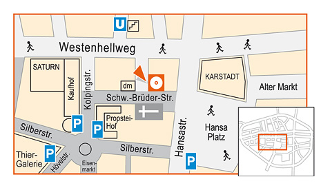Noch mehr mittendrin geht nicht. Direkt an der Dortmunder Haupteinkaufsmeile Westenhellweg gelegen. Hier hat Ihre Suche ein Ende. Oder fängt bei 50.000 CDs, 10.000 LPs, 10.000 DVDs und Blu-Rays sowie 2.000 Games auf 2 Etagen gerade erst an. Wir freuen uns auf Sie.